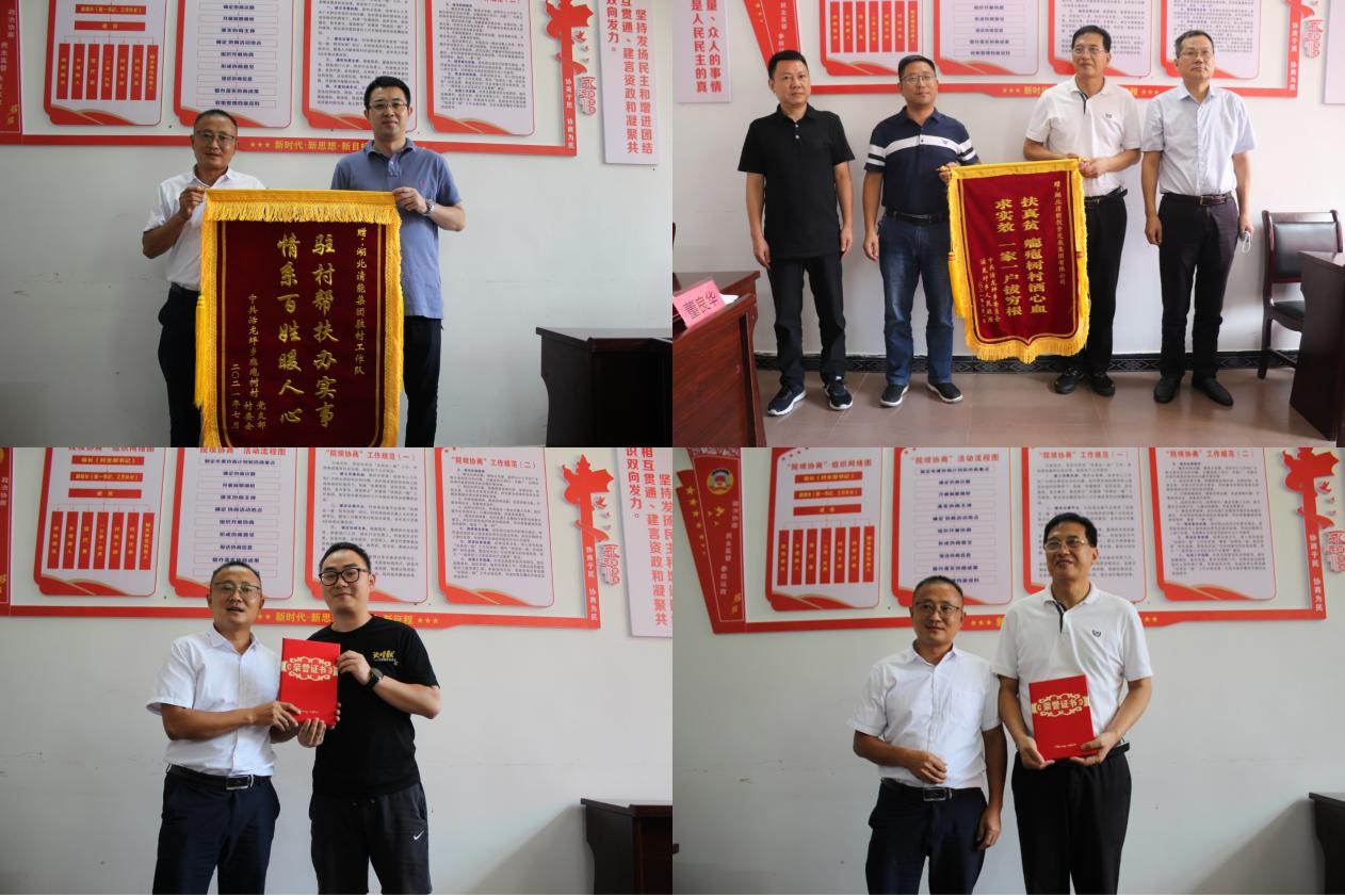 圖:鄉(xiāng)、村兩委向清能集團(tuán)授予錦旗、頒發(fā)榮譽(yù)證書